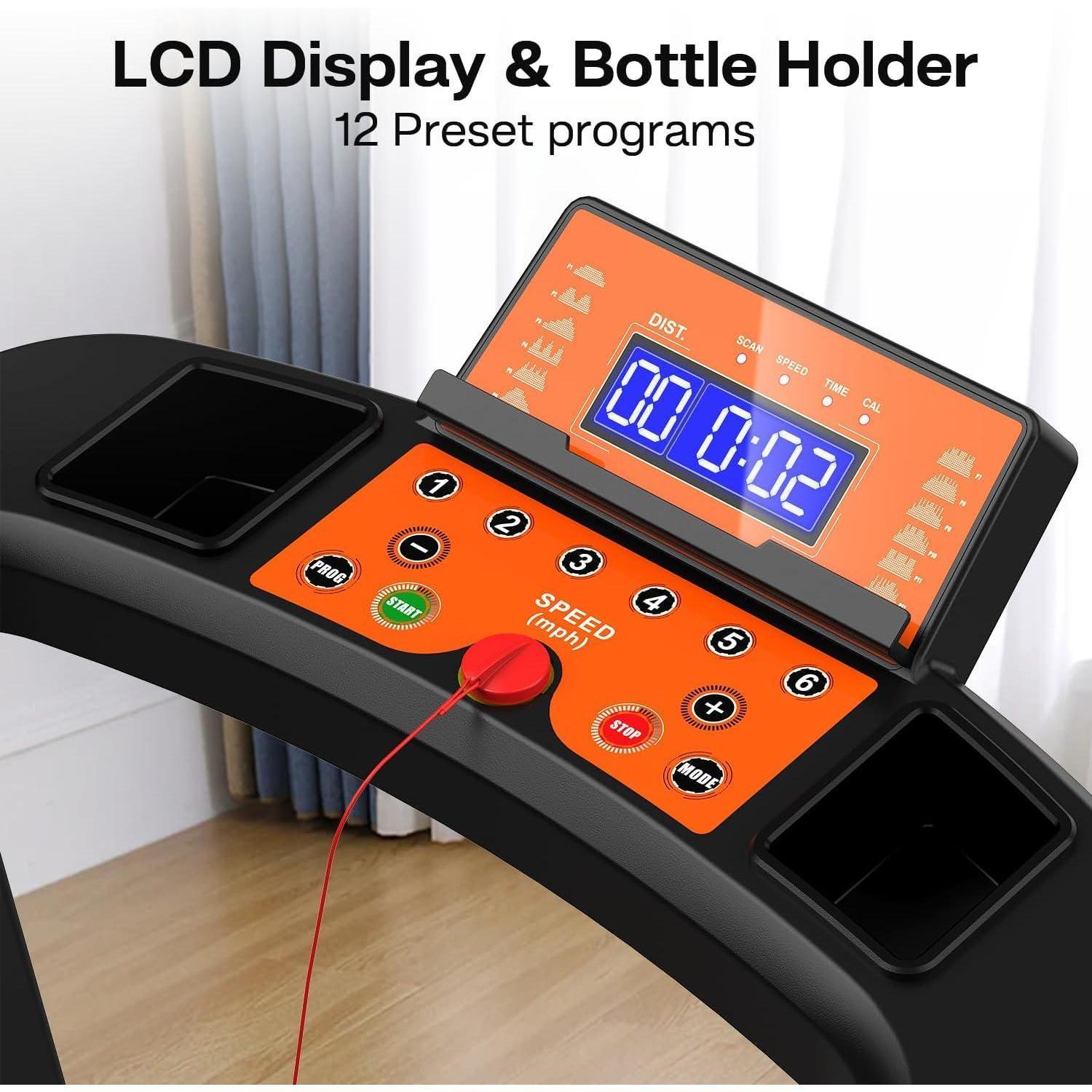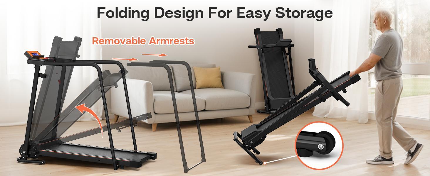 Elderly Rehabilitation Treadmill With Long Armrests LCD Display 300 Lbs Weight Capacity 3 Control Modes Cup Holder 0.5 To 7.5 MPH Speed Safety Key Easy-Move Wheels